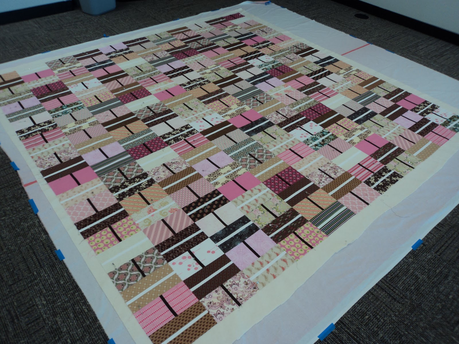 But it snowed here this weekend. Nothin to do, nowhere to go. So...guess who now has a brand-new 88" x 88" quilt top? Huh?! Yep that's right! Here's a little peek: